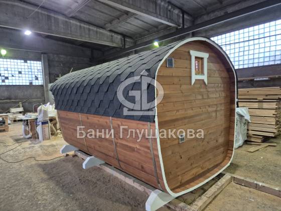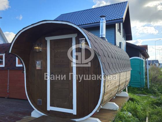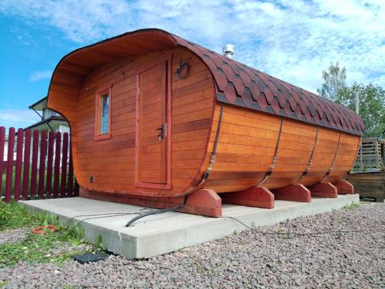 Оригинальная баня-бочка, сочетающая в себе преимущества квадратной и круглой модели