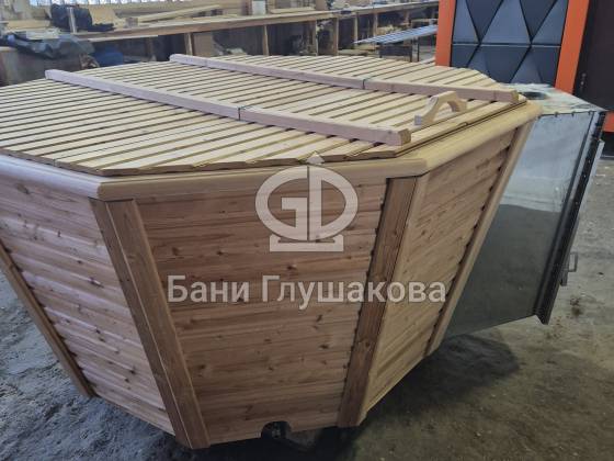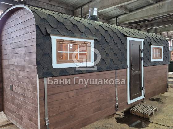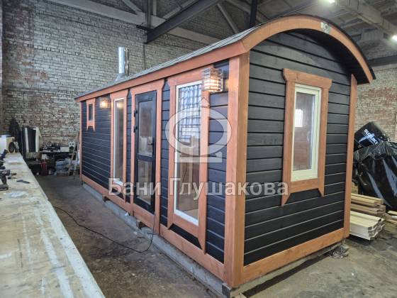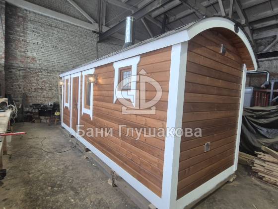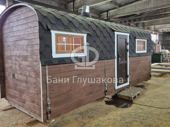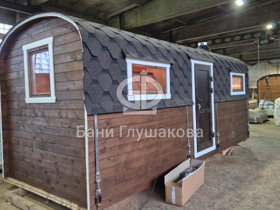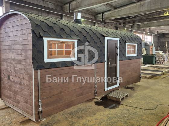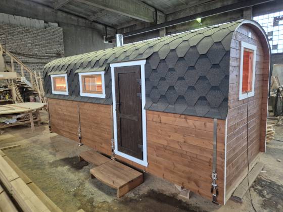 Гибрид «Кареты» и «Буханочки» из одного из лучших на рынке материалов – термированной бочковой доски, – и с утеплённым герметичным полом.