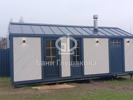 Эта баня — пример того, как современные формы и природные материалы создают гармонию. Настоящий барнхаус для души и отдыха, в котором каждая деталь продумана и имеет свой характер.