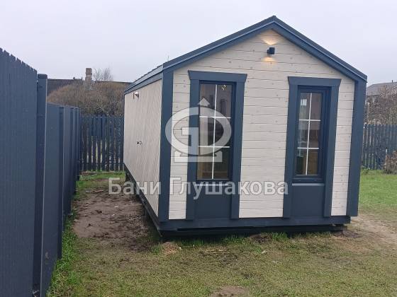 Перед вами один из самых атмосферных наших проектов — баня «Барнхаус» в современном скандинавском стиле. Снаружи она выглядит сдержанно и элегантно — серо-синие тона, лаконичные линии, продуманная геометрия. Но стоит открыть дверь, и вы попадаете в мир тепла, дерева и уюта.