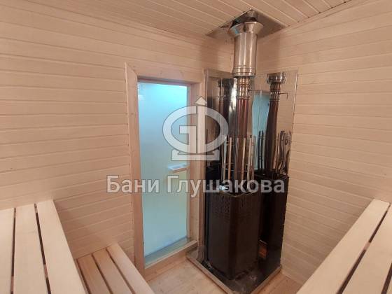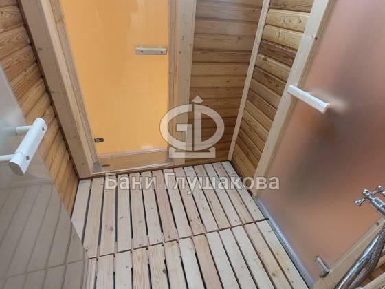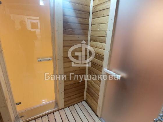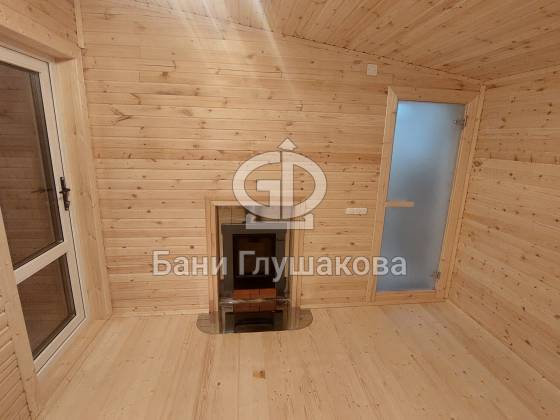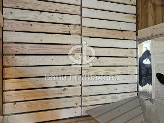 Перед входом — небольшая терраса с крыльцом, где можно посидеть с чашкой чая после парения. Внутри — всё готово к отдыху: комната отдыха, парная и душевое помещение, выполненные «под ключ».