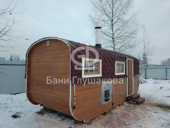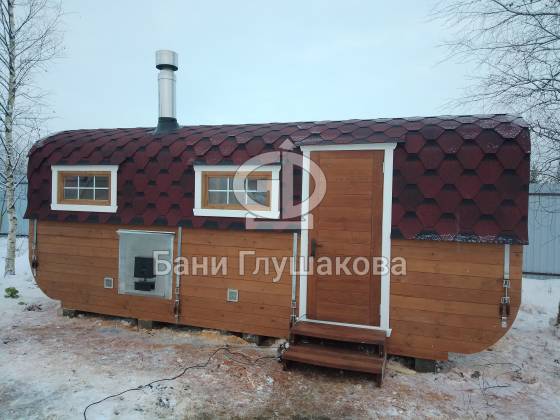 Компактность и мобильность: Баня-бочка — это готовое решение, которое легко устанавливается на любом участке.