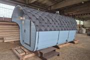 Размер — 2,4 × 4 метра, внутри — два продуманных помещения: комната отдыха и парная. Всё, как нужно, без лишнего.