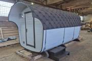 Размер — 2,4 × 4 метра, внутри — два продуманных помещения: комната отдыха и парная. Всё, как нужно, без лишнего.
