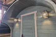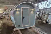 Размер — 2,4 × 4 метра, внутри — два продуманных помещения: комната отдыха и парная. Всё, как нужно, без лишнего.