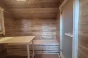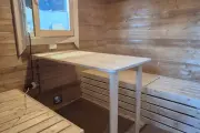 Внутри 3 помещения: комната отдыха, помывочная и парная. Будьте внимательны – в этой бане нет душевого оборудования. Вода для мытья набирается в парной.