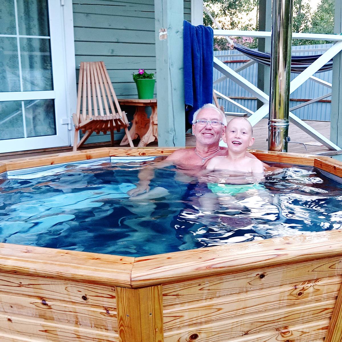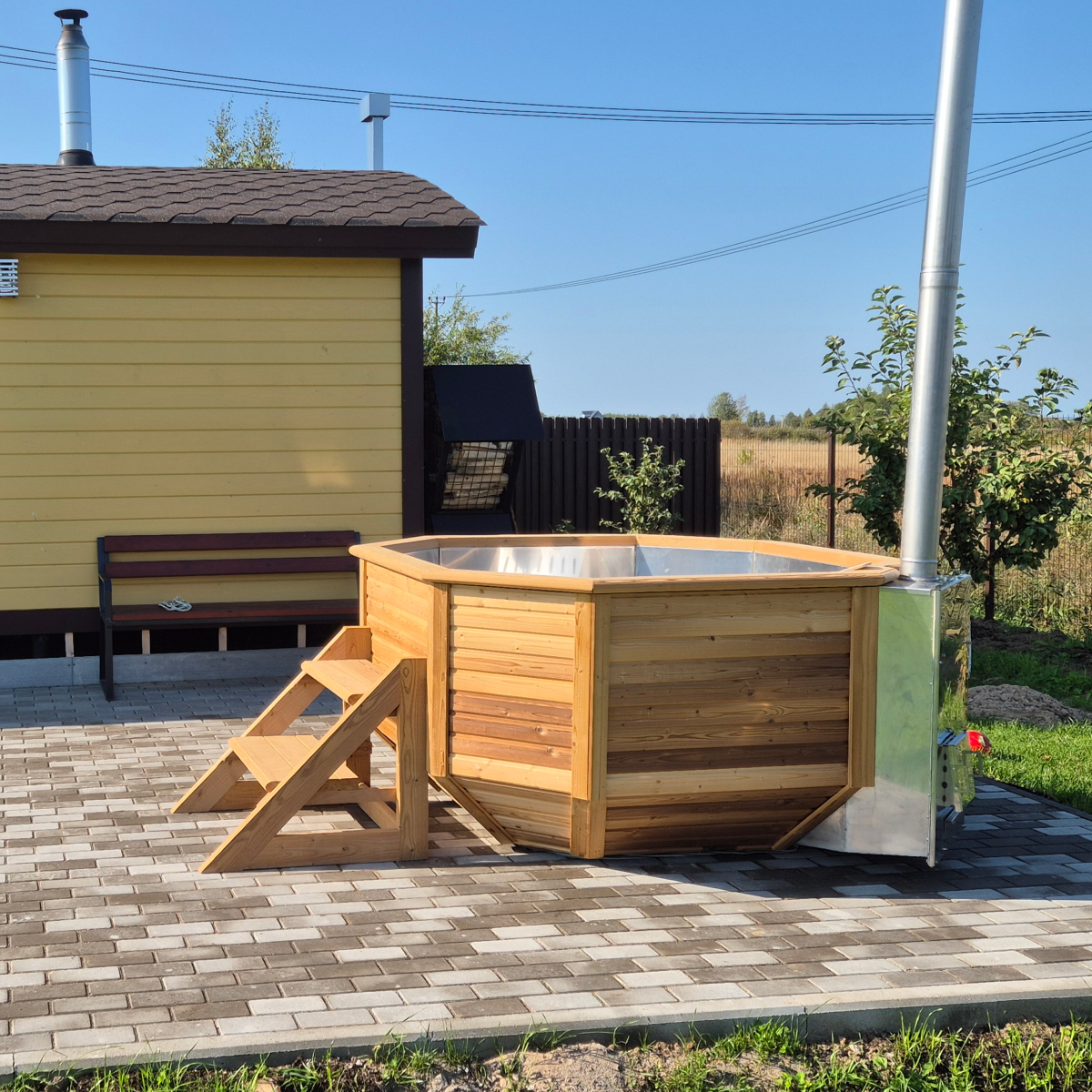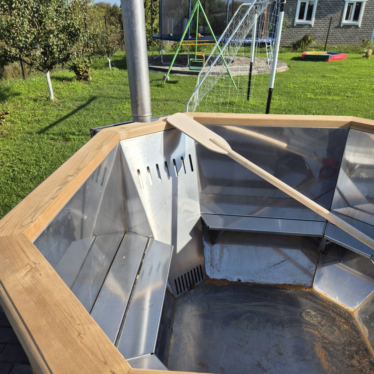 Наши чаны из нержавеющей стали — это долговечность без коррозии, быстрый нагрев за 2–3 часа, удобство и комфорт при купании, ремонтопригодная печь, прочная и красивая отделка из термодревесины, а также быстрая доставка и готовность к установке без лишних хлопот.