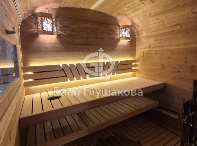 Внутри есть комната отдыха, душевое помещение, парная. Всё сделано под ключ.