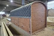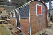 Вашему вниманию предлагаем новинку – перевозную баню «Буханочка» из бочковой термодоски. По сути это гибрид «Кареты» и «Буханочки».