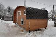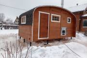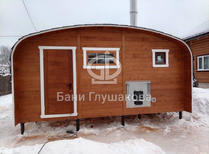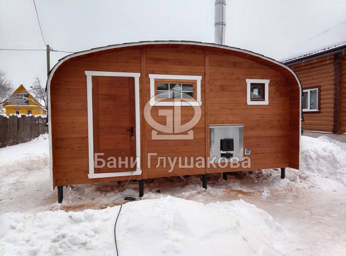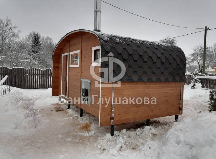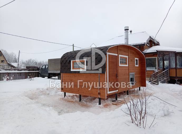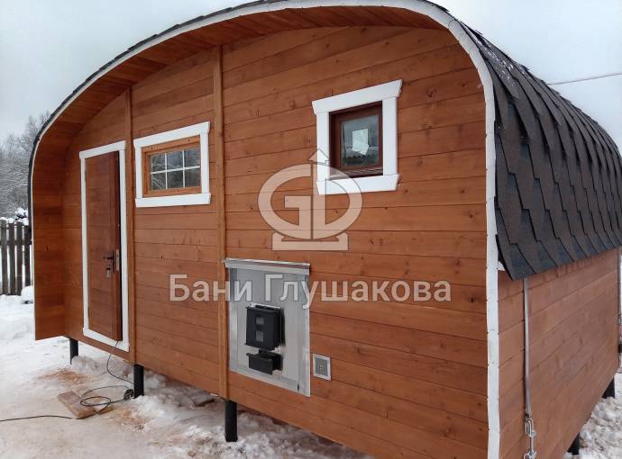 Мы разработали этот проект для тех, кому тесно в стандартной бочке, но хочется сохранить её главные плюсы: стремительный прогрев и мягкий микроклимат. Скругленные углы кровли и стен не просто создают узнаваемый силуэт, но и эффективно распределяют пар внутри помещений.