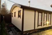 Строительство по каркасной технологии с обшивкой снаружи внахлёст «елочкой» или имитацией бруса (на выбор). Утепление 50 мм.