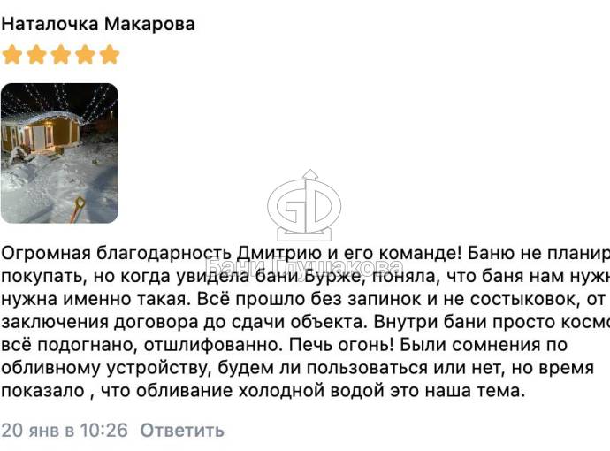 Требуется подробная консультация? Свяжитесь с нашими менеджерами. Мы подготовим индивидуальную смету, уточним сроки изготовления и проконсультируем по доставке в ваш регион. Ваша баня начинается с простого разговора!