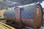 Баня бочка круглой формы диаметром 2,3 метра и длиной 5,9 метров — это максимальный размер для бочки перевозного типа.