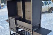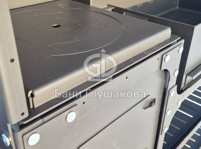 • Мангал с печью «два в одном»: С левой стороны расположена полноценная варочная поверхность с конфорками разного диаметра. Это идеальный мангал под казан, где можно точно регулировать интенсивность жара для правильного томления блюд.