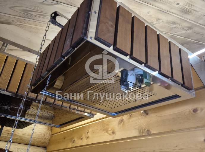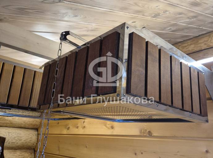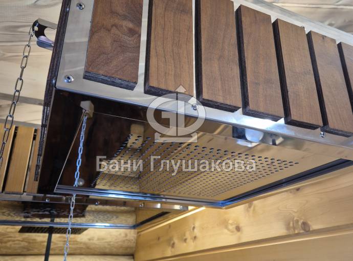 Отличительной чертой данной модификации является декоративная облицовка корпуса вертикальными ламелями из термодерева. Применение термомодифицированной древесины гарантирует стабильность отделки: она не деформируется под воздействием высокой влажности и перепадов температур, сохраняя благородный темный оттенок и геометрию на протяжении всего срока службы.